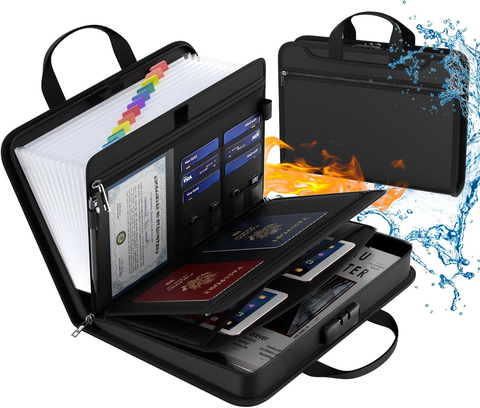 Yhx שחור נייד מצופה תיק מארגן תיקיית חסין אש עמיד למים עם מסמך כסף
